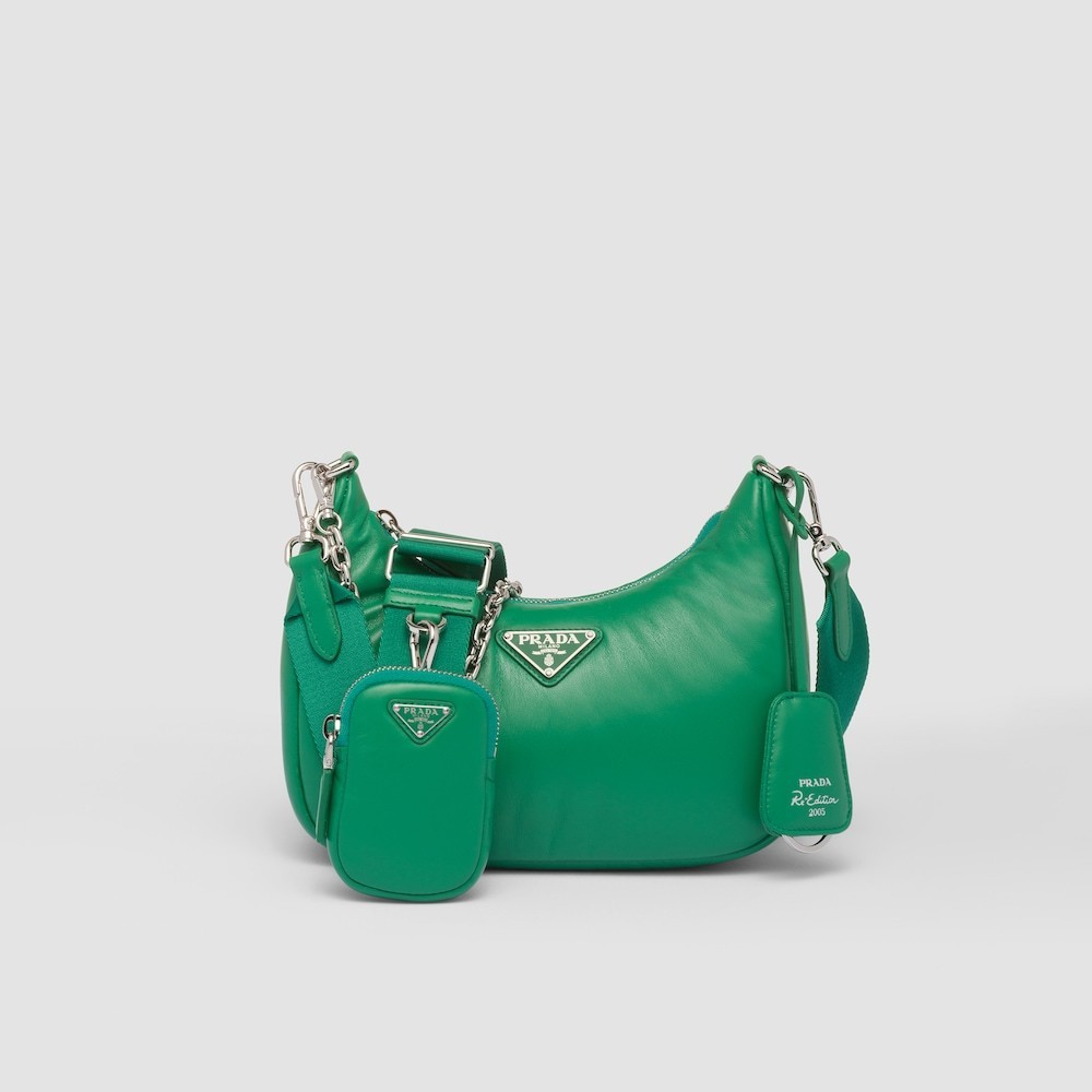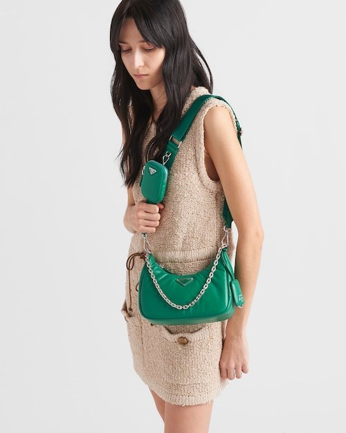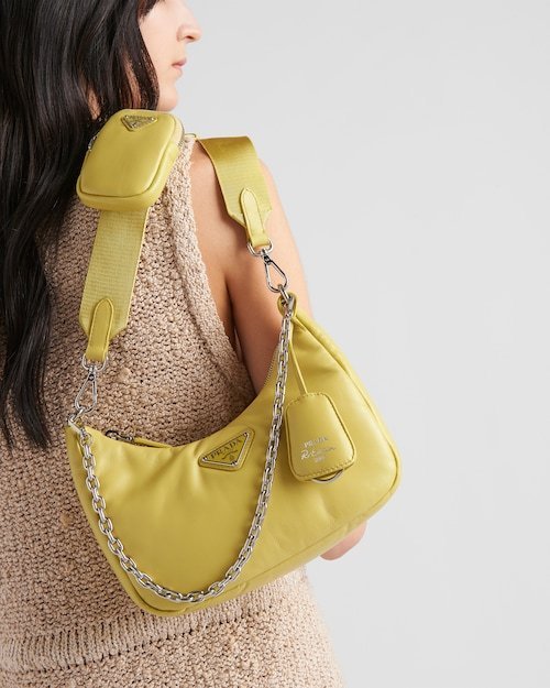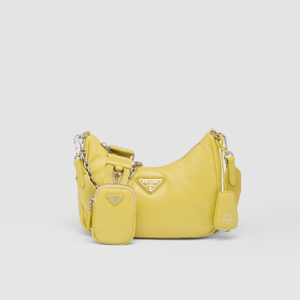 軽いパディング取り外し可能なチェーンハンドル取り外し・調節可能なロゴウェビングのショルダーストラップ、長さ: 85 cmジッパー付きの取り外し可能なレザーポーチとキーチェーン金属ハードウェアフロントにエナメルメタルのトライアングルロゴジッパー開閉ナッパレザーの裏地高さ: 18cm長さ: 6.5cm幅: 22cm材料:レザー