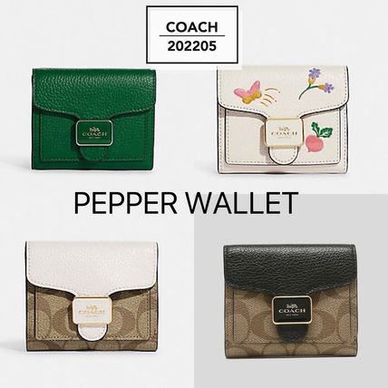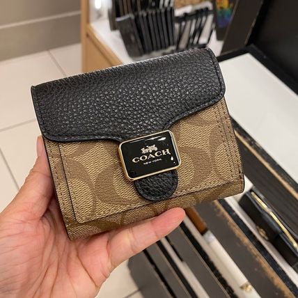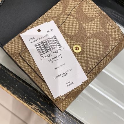 Nine credit card slotsFull-length bill compartmentSnap closureOutside snap coin pocket4 1/4 (L) x 3 3/4 (H)シグネチャー コーテッド キャンバス リファインド ペブル レザーカードスロット x 9札入れスナップ開閉外側にスナップ付き小銭入れ縦9.5cm x 横11cm