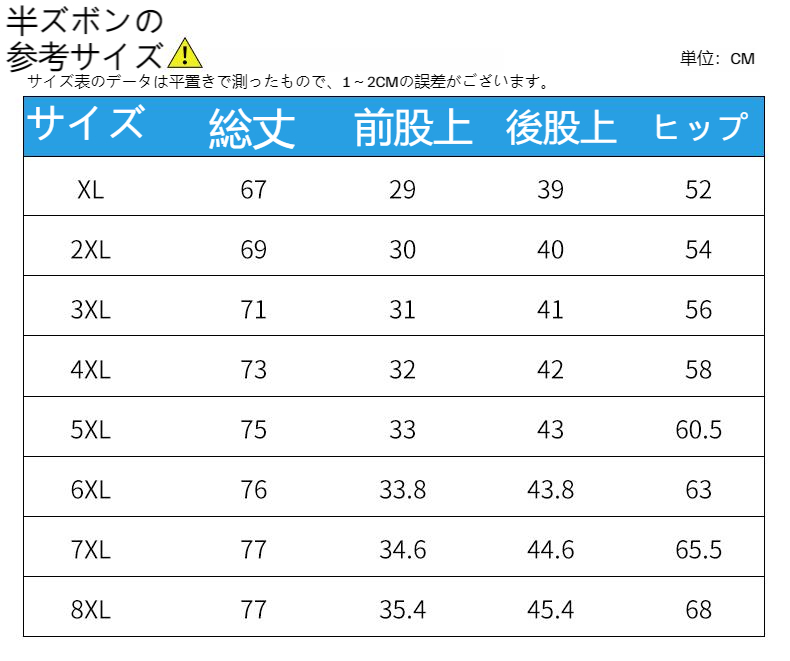 このパンツの生まれたきっかけは、大きいサイズの方でもオシャレを楽しんで欲しいという思いから。実際の声を聞きながら、多くの方の要望にお応えして開発しました。だからこそ、サイズバリエーションもXL~8XLまでご用意しました。