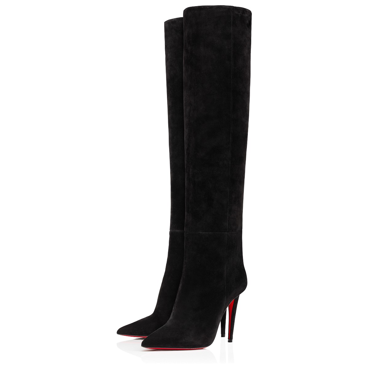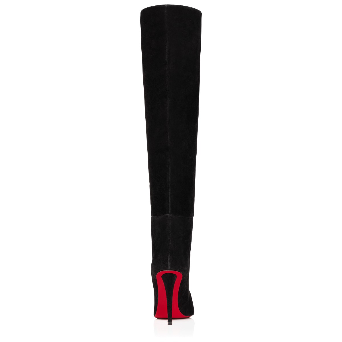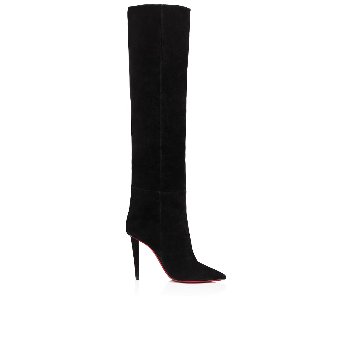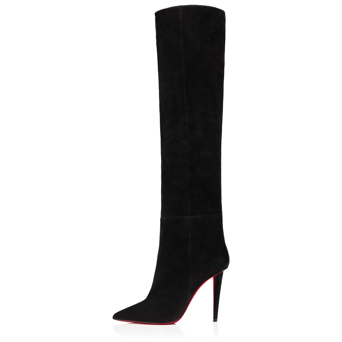 クリスチャン ルブタンらしいクリエイティビティが光るブーツ、Astrilarge Botta。100mmのスティレットヒールをソールにダイレクトに組み込み、クリーンなラインを引き立てるブラックのヴォーベロアで仕上げました。ニーハイブーツ風にも、ゆったりとアンクルブーツのようにもお楽しみいただける1足です。ポインテッドトウが、洗練された雰囲気と都会的な個性を演出します。