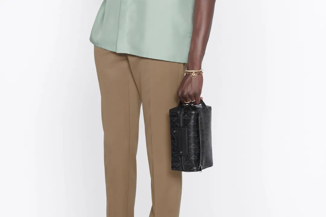 グラフィカルな「CD ダイヤモンド」のデザイン、建築的なラインのダイヤモンドで構成されたCDイニシャルをオーガニック コットンキャンバスに装飾。