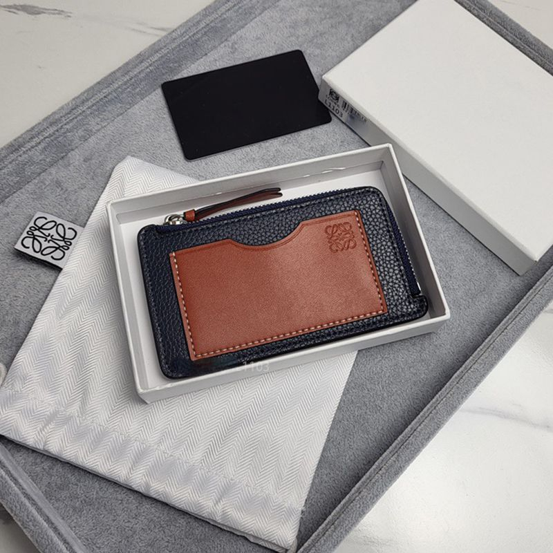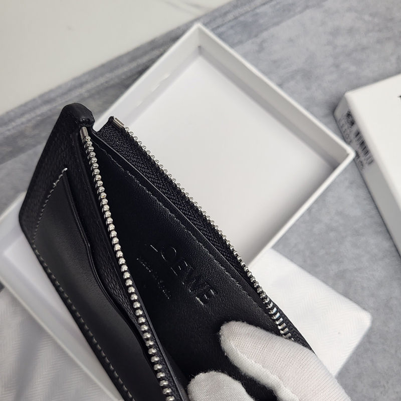 エンボス加工された LOEWE アナグラム パッチが付いたサテン カーフスキンのコイン カード ホルダー。