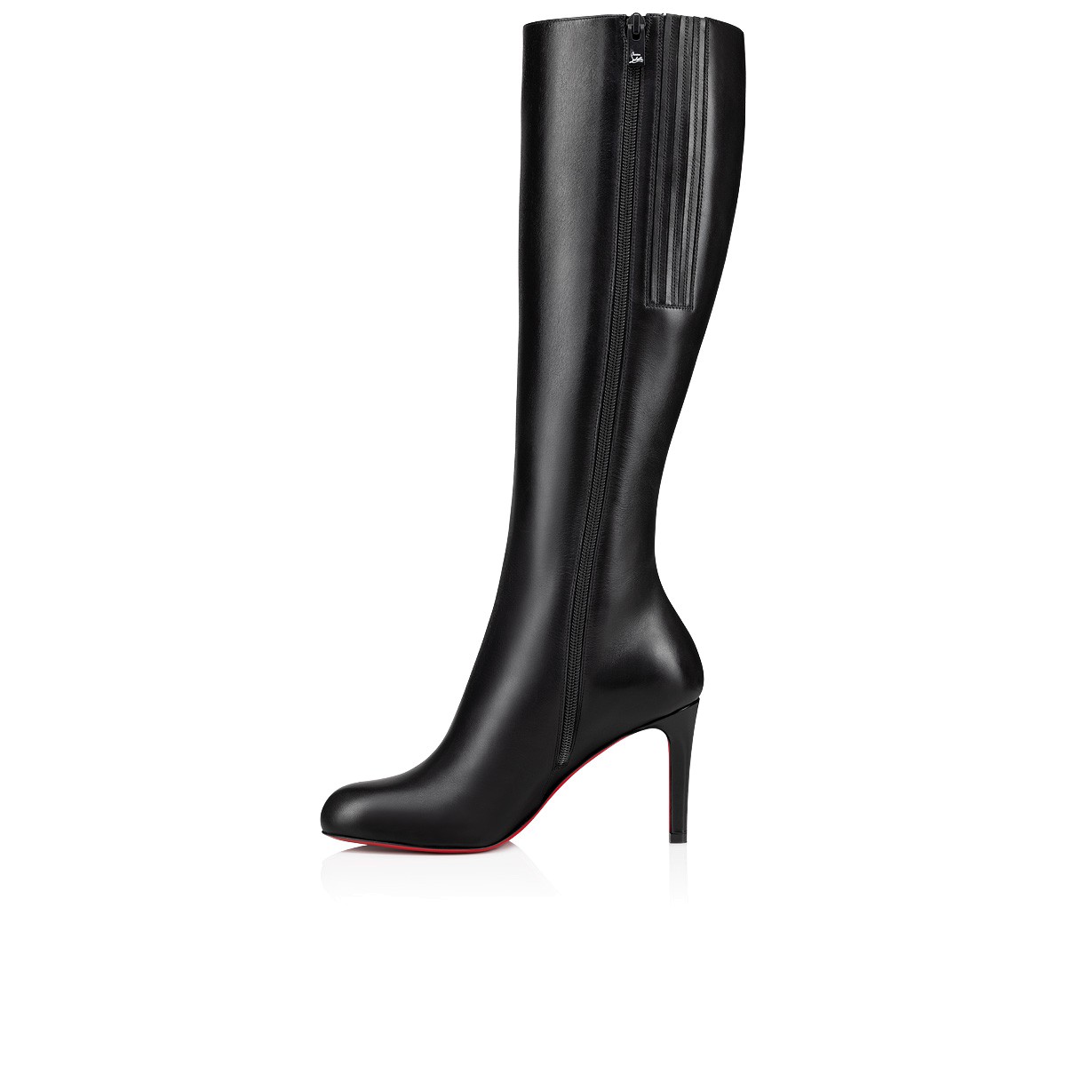 ブラックのカーフレザーで洗練されたデザインに 仕上げたニーハイブーツ"PUMPPIE BOTTA"(パンピーボッタ)。 ファスナー付きで着脱もスムーズ。