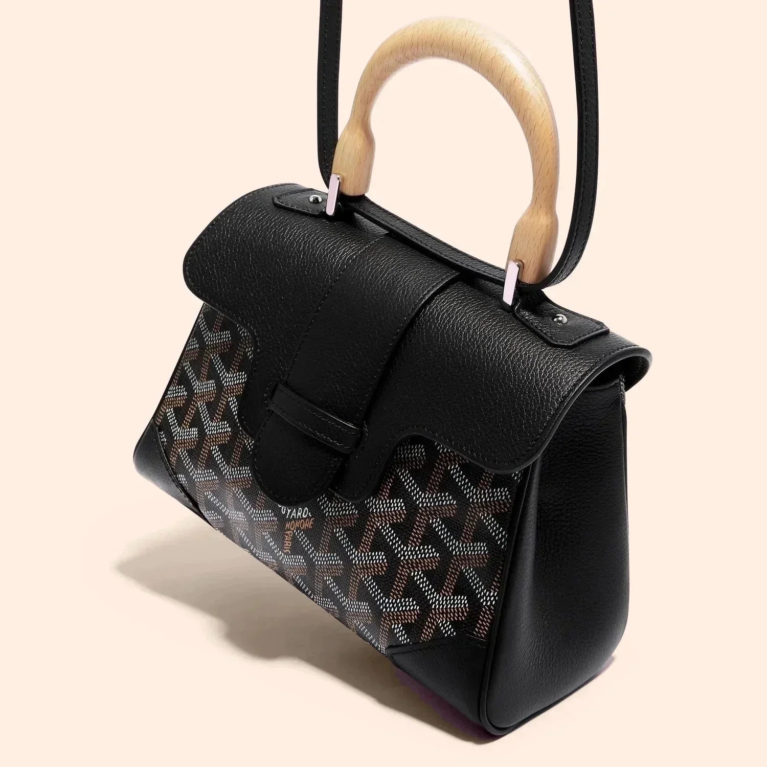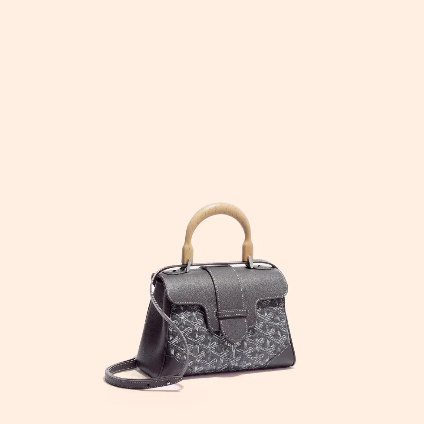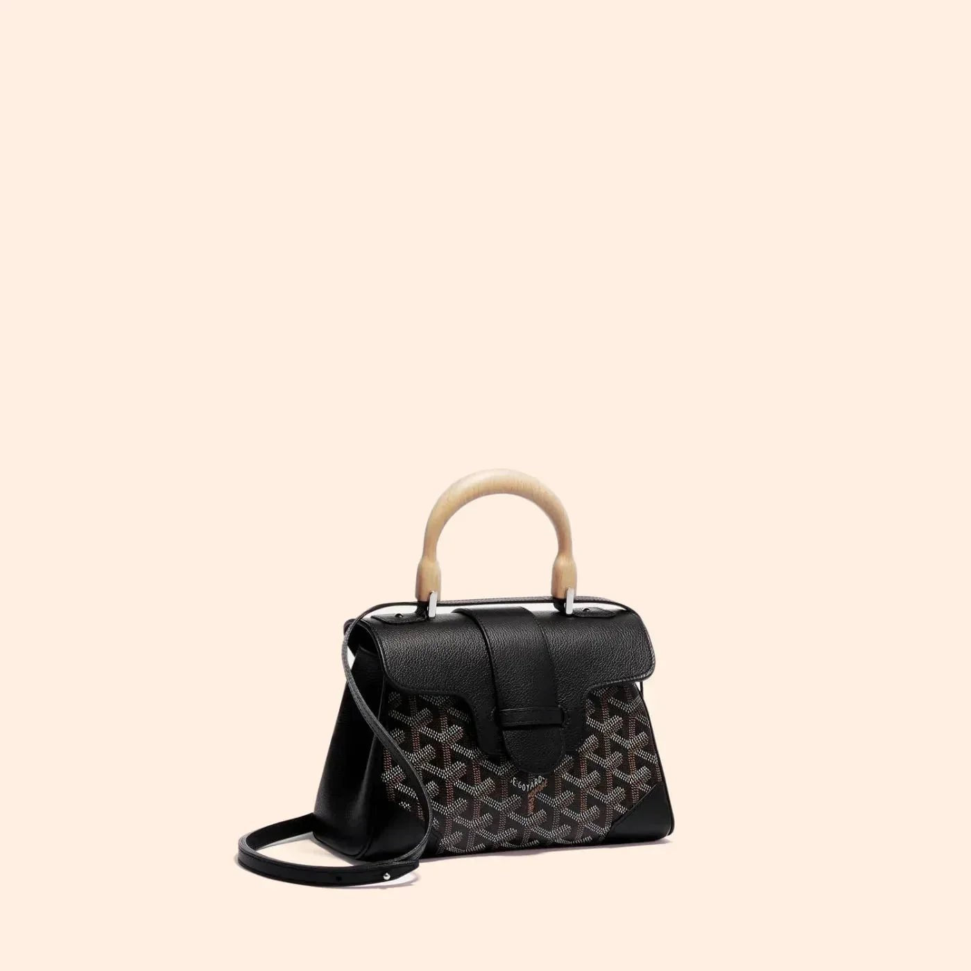 Velina Mini is a standout piece inspired by Maison Goyard's iconic design, featuring hallmark elements of traditional trunk-making such as wood and faux leather accents. This versatile, miniaturized version offers flexibility in styling, complete with an optional strap for a chic and sophisticated look. Perfect for those who appreciate classic elegance with a practical touch.