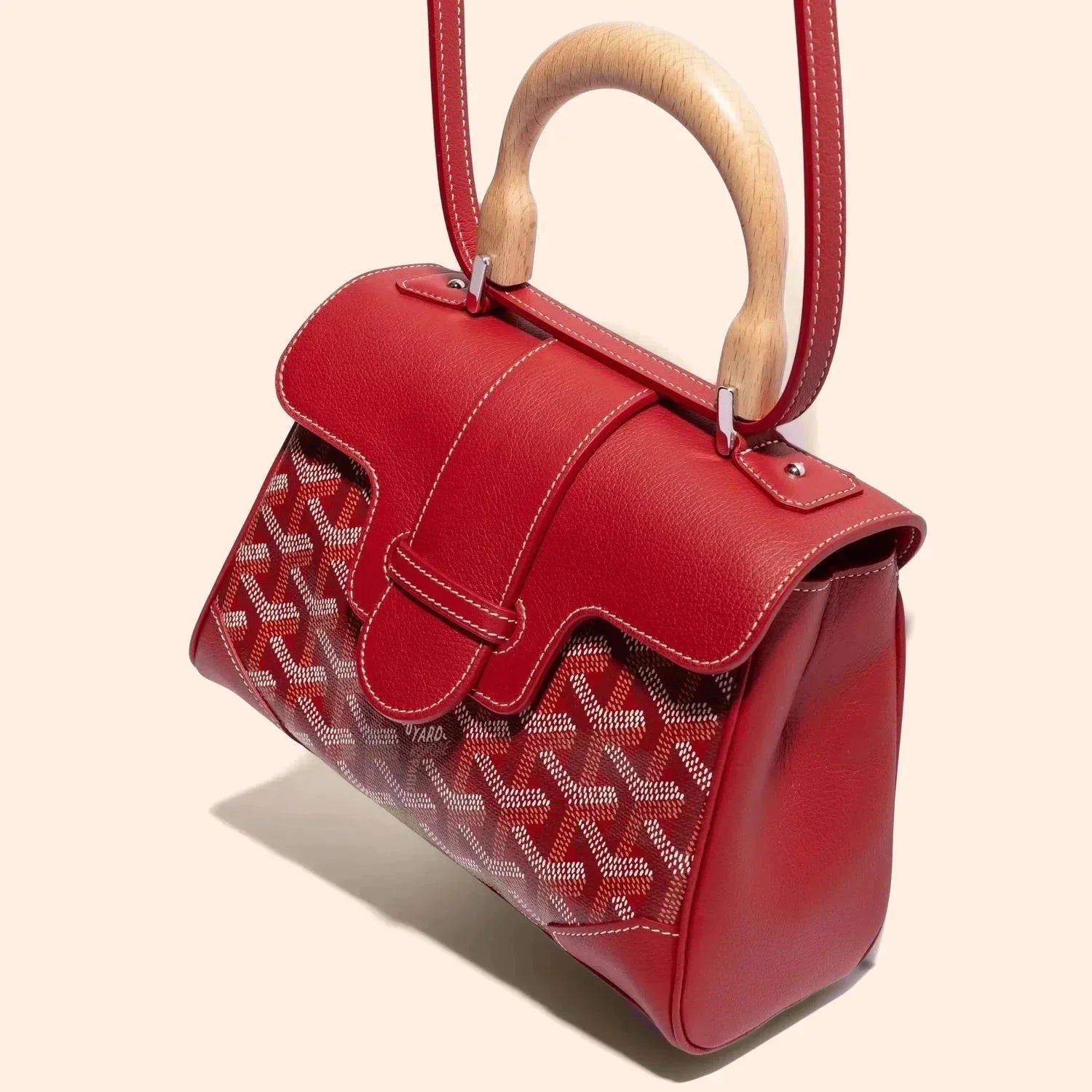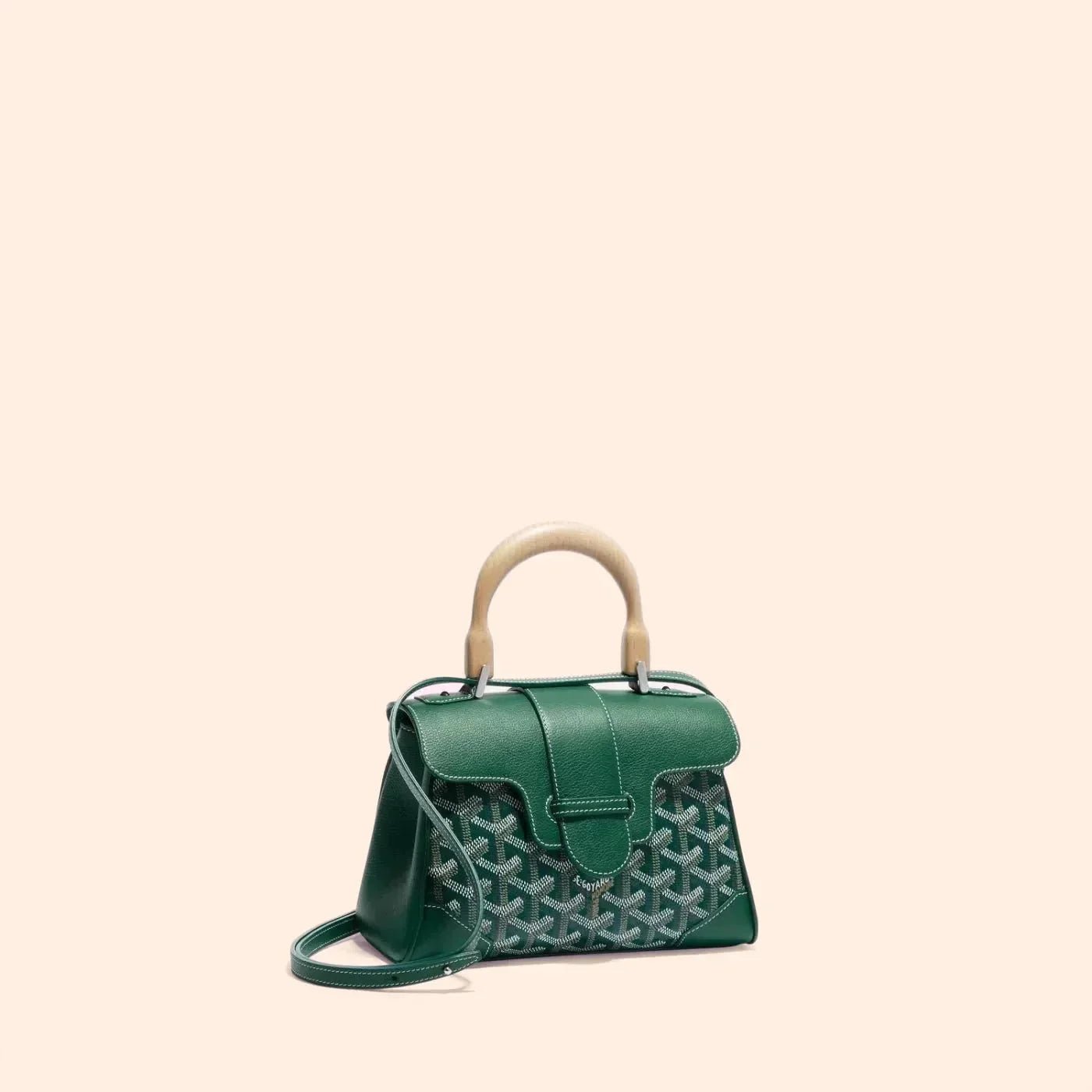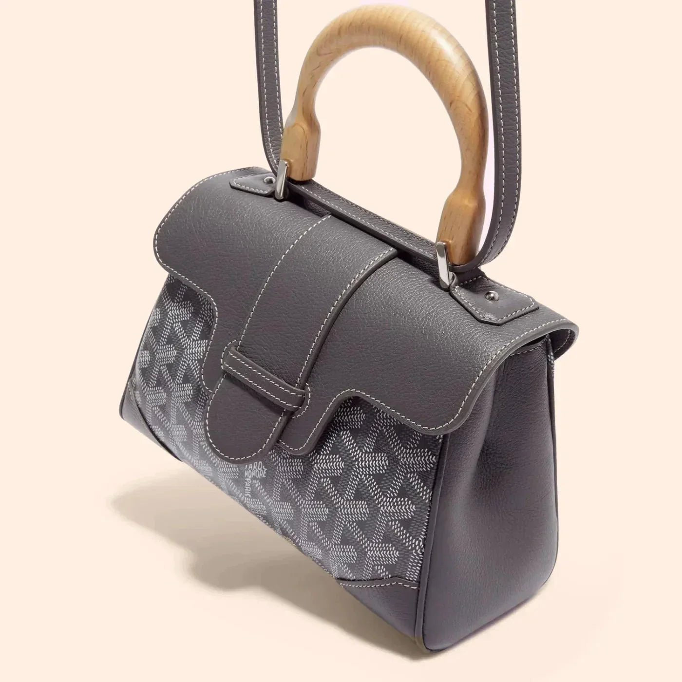 Velina Mini is a standout piece inspired by Maison Goyard's iconic design, featuring hallmark elements of traditional trunk-making such as wood and faux leather accents. This versatile, miniaturized version offers flexibility in styling, complete with an optional strap for a chic and sophisticated look. Perfect for those who appreciate classic elegance with a practical touch.