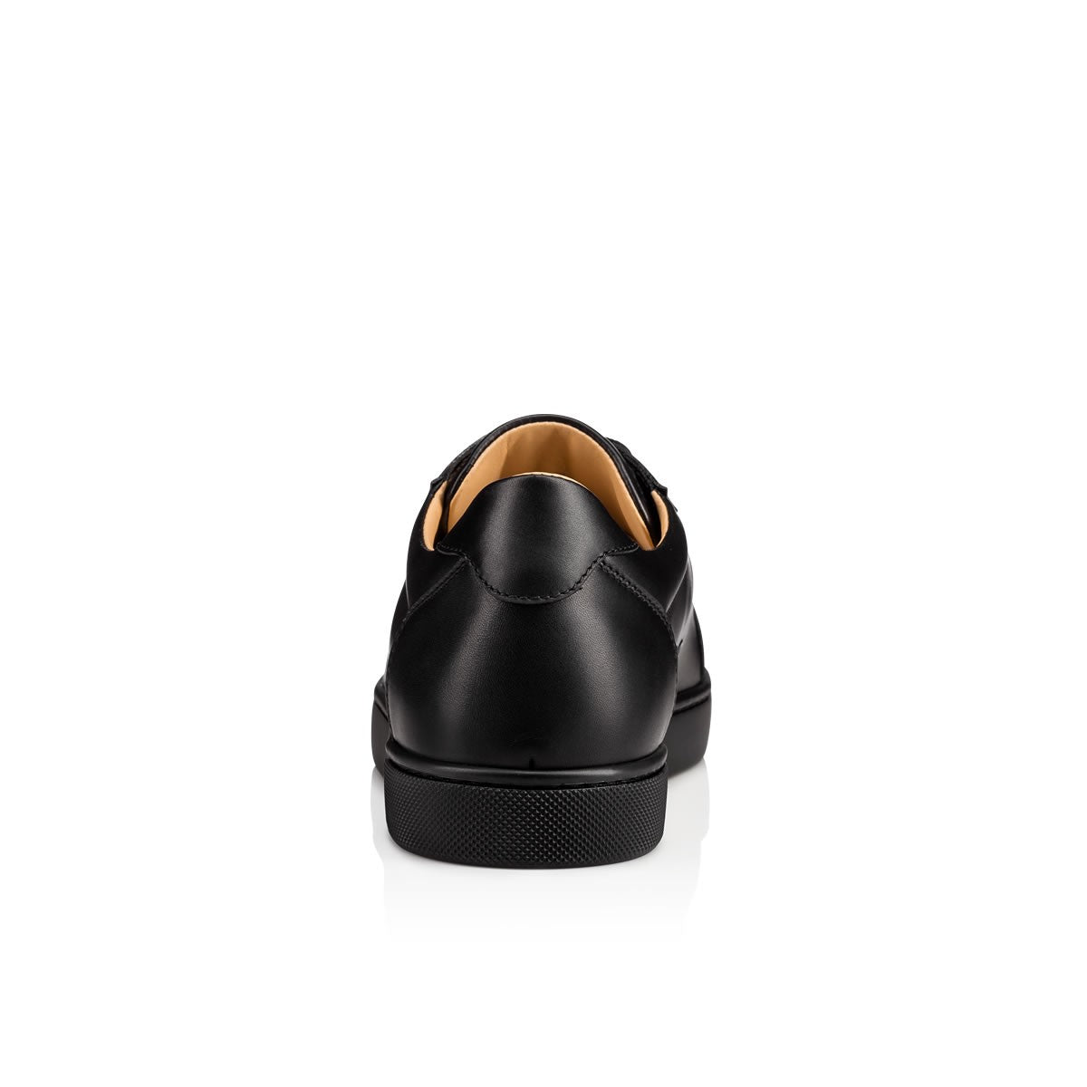 A statement sneaker of infinite potential, Christian Louboutin’s Vieira is a round-toe sneaker, crafted in black calfskin and streamlined to a low-top silhouette. Confident in its tone-on-tone look, elegant topstitching and grosgrain piping detail add a polished finish to this signature model.
